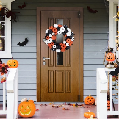 - Durable and Easy to Hang: This Halloween wreath is made of high-quality materials and is durable. The front is a pumpkin decoration in 3 colors: black, orange, and white, and the back is an artificial rattan circle. Its lightweight design makes installation a breeze.