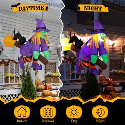 - 【Dynamic Witch Window Breakout】Features a detailed witch riding a broom as she bursts through a window, creating a dramatic and eerie Halloween scene. Perfect for captivating guests and trick-or-treaters.