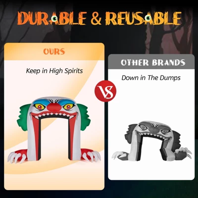 - 【Giant 8.9FT Clown Archway】 Towering inflatable clown archway with detailed facial features and menacing claws creates a spine-chilling entrance for Halloween displays.