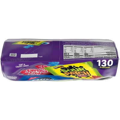 - One Halloween Candy and Cookie Variety Pack bag containing 130 treat-size snack packs of SOUR PATCH KIDS and SWEDISH FISH Soft & Chewy Candy and OREO Chocolate Sandwich Cookies