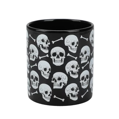 Enjoy Halloween in style with this 2-pack of 16 oz ceramic mugs. The set includes a gray mug with an all-over print of skulls and a black mug with an all-over print of Jack-o’-lantern faces. Each mug measures 3.46″ x 3.27″ x 4.6″ and is crafted from high-quality stoneware. Both mugs are microwave and dishwasher safe, providing both festive flair and practical convenience for your Halloween celebrations.