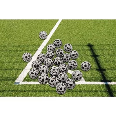 - Foil-wrapped milk chocolate balls designed to look like classic soccer balls