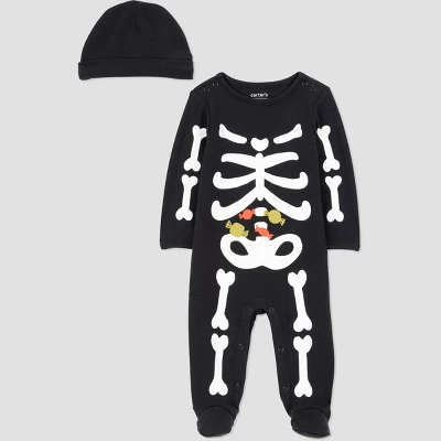 - Includes 1-piece footed pajama and matching cap Skeleton print detail