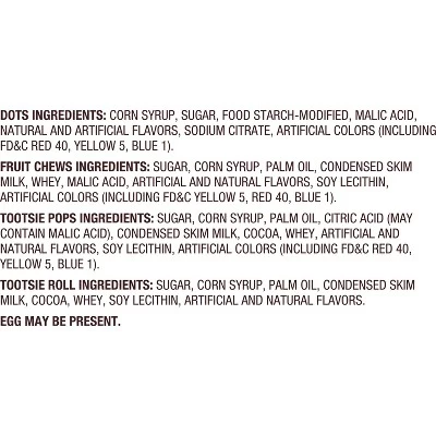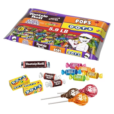 - Chocolate and Fruity Flavor Mixed Assortment: Includes Tootsie Rolls, Tootsie Pops, Dots, Tootsie fruit chews and Tootsie snack bars!