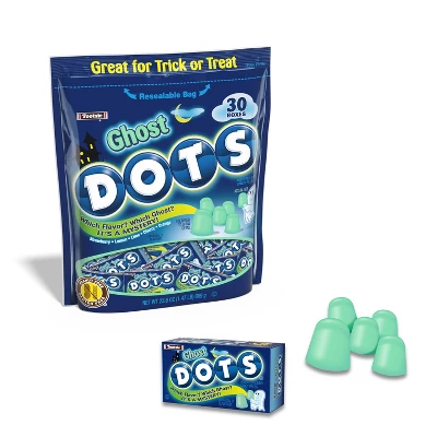 Bring the spooky spirit to your Halloween celebrations with Dots Ghosts 30 Count Mini Boxes! These resealable bags are perfect for trick-or-treating, party favors, or filling up your candy bowl. Each box contains a mystery assortment of deliciously flavored ghost-shaped candies that will delight kids and adults alike. With 30 individual boxes, you’ll have plenty to share at your next haunted gathering. Indulge in these spooky candies and let the Halloween fun begin! Gluten Free and Peanut Free.