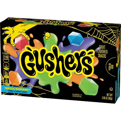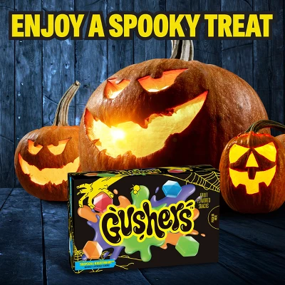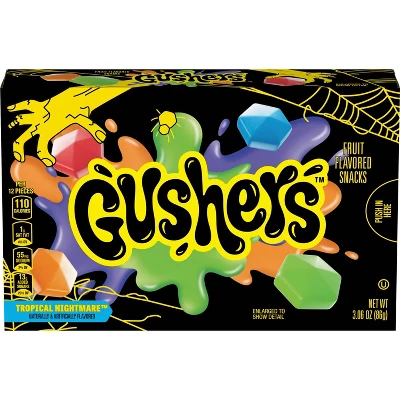 - GUSHING WITH SPOOKY FUN: Unleash your Halloween spirit with Gushers Tropical Nightmare fruit flavored snacks; Sink your teeth in for a burst of gooey liquid