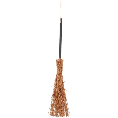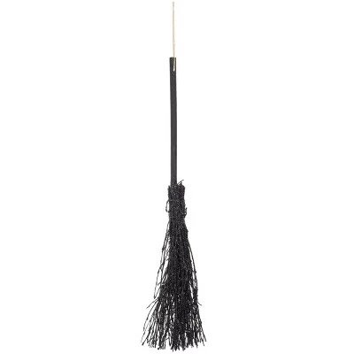 - Crafted with shimmering glitter accents, this set of two decorative witch broom figurines brings festive charm to your Halloween home décor. Each 19″ broom features intricate detailing, perfect for display on shelves, mantels, or entryway tables.