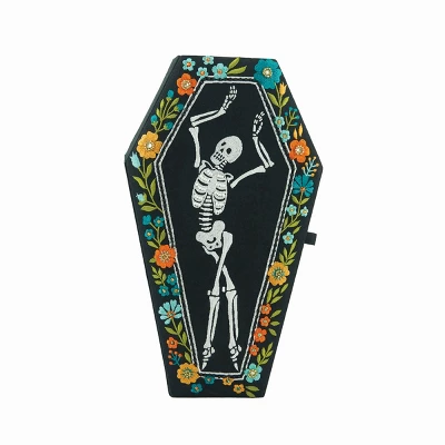 Decorate the season with this wonderful Skeleton Coffin Dance Box Table Top Decorative Object Figurine. We have designed these figurines to be displayed on a table, mantle, shelf or on any other surface inside your home. They are perfect for your home or as a gift for a friend or loved one. Get excited for decorating with them with each upcoming season.