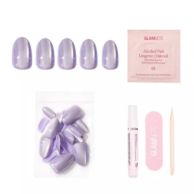 Effortlessly ethereal, Glamnetic’s Mermaid’s Tail Nail Set mesmerizes from every angle. These short oval nails are designed with an iridescent purple hue and a shimmering velvet finish. Perfect for summer nights and siren-worthy styles, this salon-quality nail set lasts up to 2 weeks.