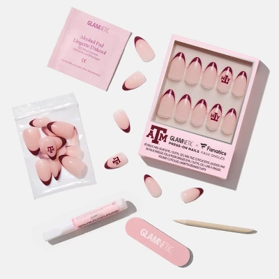 The Texas A&M Aggies Press-On Nails celebrate the team with maroon French tips and logoed accent nails. Designed in short almond with a glossy finish, these are salon-quality fan fingers.