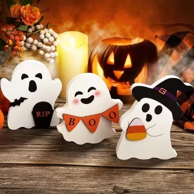 - Bright Color Block – Our adorable wooden signs are painted in bright colors, white cute wooden ghost table decor ideal for styling a tiered tray.