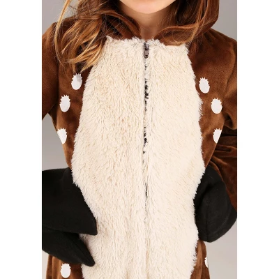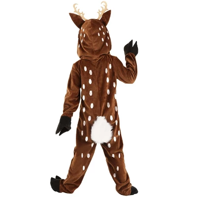 The Fun Costumes Fawn Deer Costume Toddler OutfitCute and furry animal costumes are always a great fit for little ones! If you’re wondering how to give your toddler that woodsy vibe, you’ll be happy to discover this baby deer onesie. It’s an easy-on jumpsuit with a front zipper for a secure fit. Made of a soft brown, spotted fabric, it features a faux fur belly and a faux fur tail in back. The hood features attached antlers and ears and the antlers stay up thanks to a wire inside. The hands and feet are enclosed with black fleece to create the look of hooves.Product Details:100% polyesterMinky soft fabric jumpsuit with all over printed fawn spotsZipper down center frontCuddle plush tan belly fabricFaux fur tail attached on the backFelt antlers and inside earsElastic bands on the hooves to secure under the feetAbout Us:Fun Costumes are exclusively made by us and begin with passion, teamwork, and industry expertise decades in the making. Our products are proof that with the right people even a simple idea can grow into something incredible. We started in a small garage in Minnesota, providing costumes to our local community, and now we’re creating costumes for people all around the world.