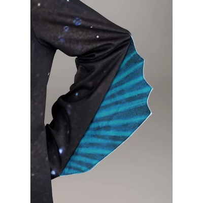 Dive into a world of fun and imagination with the Toddler Bigmouth Angler Fish Costume, great for little ones who love to explore the depths of creativity this Halloween.This adorable jersey knit jumpsuit features a convenient hook and loop fastener down the center back, making it easy to put on and take off. The costume is designed with vibrant sublimated graphics on the felt fins, sewn onto the legs, sleeves, and back, adding an authentic aquatic touch.The foam-backed headpiece is sure to be a hit, sliding comfortably onto your toddler’s head with a large mouth opening showcasing felt teeth for a playful yet spooky effect. Plastic gray eyes sewn onto the headpiece bring this charming fish to life.For an extra splash of excitement, a fabric-covered metal rod extends from the head, featuring a plastic bulb on the end that lights up, creating a magical glow. The headpiece also contains a battery pack inside a small sleeve, complete with an on/off switch for easy operation. This costume requires 3x 1.5V alkaline batteries (demo batteries included) to illuminate the fun.Designed exclusively by us, this Toddler Bigmouth Angler Fish Costume guarantees a unique and delightful experience for your little one. Get ready for a Halloween filled with underwater adventures!