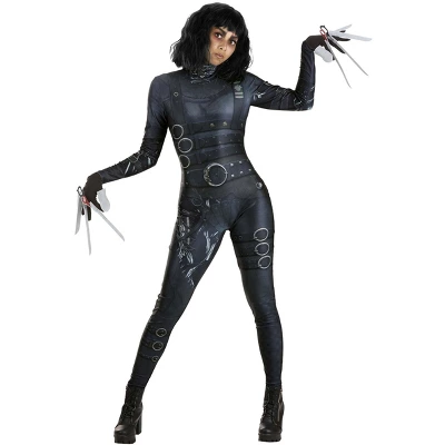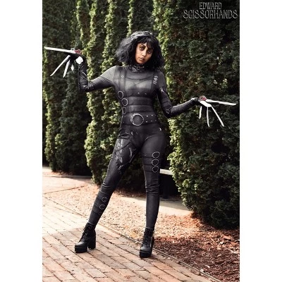Become the legend you’ve always dreamed with this exclusive Women’s Edward Scissorhands Costume! Based on the Tim Burton character’s iconic outfit, this officially licensed ensemble starts with a sleek black bodysuit. Ensuring the suit has the industrial look Edward’s signature outfit is known for, without the weight, this costume features printed belts and buckles across the bodice. A belt accessory is included and fixes around the costume’s waist with a moon-shaped buckle to give the ensemble some depth. Finally, pay homage to your art kin with the included set of scissor gloves. The black knit gloves feature attached foam blades and snips to replicate a safety pair of Edward’s infamous fingers.