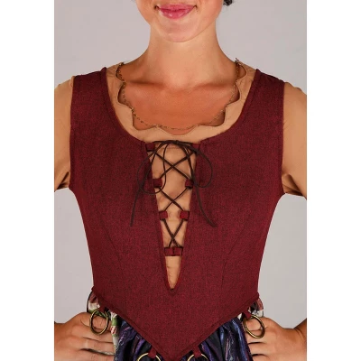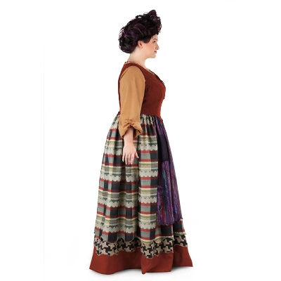Dive into the enchanting universe of Disney’s Hocus Pocus with our Women’s Plus Size Deluxe Disney Hocus Pocus Mary Sanderson Costume, a spellbinding ensemble perfect for Halloween soirées, cosplay escapades, and more! Crafted with precision and infused with magical details, this costume brings to life the iconic witch Mary Sanderson in all her whimsical glory. The 100% polyester base dress, complemented by polyester tweed bodice and faux suede lacing, showcases intricate patterns and textures that stay true to Mary’s enigmatic style. With hidden zipper closure at the back, minimal elastic stretch in the waistband, and elastic sleeves for a gathered effect, this costume ensures both comfort and style for plus-size wearers. The bronze metal chain embellishment at the collar, accompanied by four rings sewn on the waist front, adds a touch of authenticity to your transformation. The three-layered skirt, along with the sewn-in apron featuring printed pockets, adds depth and charm to your portrayal of the beloved character. Exclusively made by us and officially licensed, this costume is a premium choice to embody Mary Sanderson’s charismatic charm. Team it with the matching witch’s hat (sold separately) to complete your bewitching look and captivate all who lay eyes on you. Whether you’re gathering with fellow witches, attending a themed party, or seeking thrills on All Hallows’ Eve, our Deluxe Mary Sanderson Costume promises an unforgettable adventure full of magic and mystique. Embrace the allure of Salem and cast your spell of enchantment with confidence and flair, making this Halloween a night to remember!