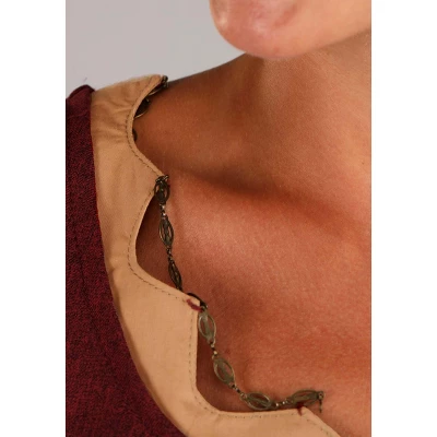 - Poly cotton blouse has polyester tweed bodice and faux suede lacing