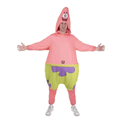 Do absolutely nothing in the SpongeBob SquarePants Patrick Official Adult Onesie Halloween Costume. This premium quality long sleeve onesie features a printed design of the bumbling pink starfish and includes a plush hood. The waist is propped out to display Patrick’s portly shape.