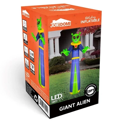 Get ready to be transported into a world of Halloween wonder with our 12-foot inflatable alien. This extraordinary addition to your holiday decorations will enchant and bewitch all who come across it. This towering extraterrestrial being features a unique and mesmerizing design that combines the mysterious charm of a wizard with the enigma of an alien. Standing tall at an impressive 12 feet, it casts a spell that adds a spooky vibe to your Halloween setup. Its meticulous attention to detail, including the piercing red eyes and other intricate elements, enhances its overall allure. The intense red eyes of the alien intensify its eerie appearance, adding an extra layer of spookiness to your decorations. It creates an immersive and captivating atmosphere that transports your Halloween scene to a whole new level.