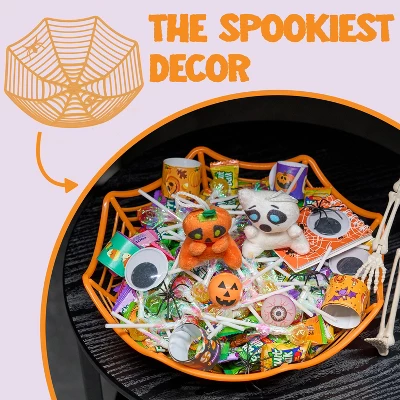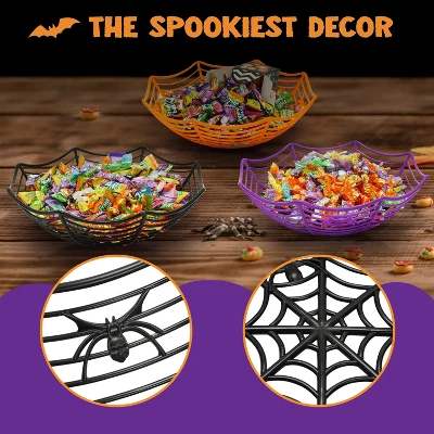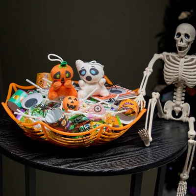 Add scary style to your Halloween with our 5-piece spider web candy bowl dish set! This festive collection includes 2 orange, 2 purple and 1 black basket – perfect for displaying candy, fruits or treats at parties. The creepy spider web design creates a haunted atmosphere while being completely child-safe (meets US toy standards). Use them as trick-or-treat collection baskets, party centerpieces or snack holders. Durable and versatile, these basket decor work equally well for home decor or outdoor Halloween displays-the perfect blend of function and fright for your Halloween celebration!