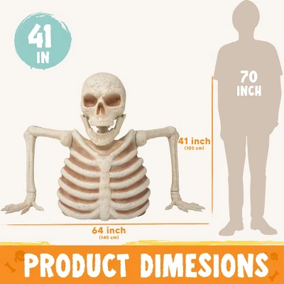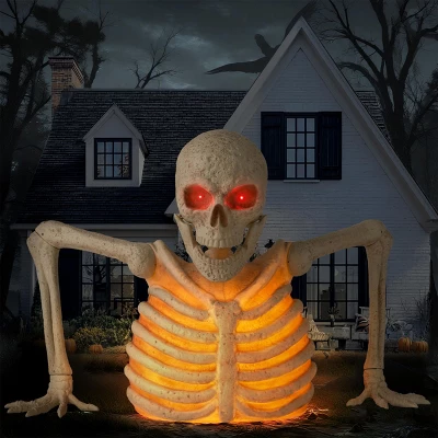 This terrifying Giant Skeleton Groundbreaker brings nightmarish realism to your Halloween setup, designed to look like an undead creature clawing its way out of the earth. With intricate detailing creates a shockingly lifelike horror scene that will mesmerize your guests. The dramatic crawling pose makes it appear as though the skeleton is emerging from the grave, adding a dynamic, spine-chilling element to your yard, haunted house, or Halloween party. Whether you’re creating a haunted graveyard, a zombie uprising scene, or a terrifying front yard display, this Giant Skeleton Groundbreaker guarantees screams, gasps, and endless Halloween thrills. Its combination of motion-activated scares, eerie lighting, and thunderous sounds makes it more than just a prop—it’s an experience. Prepare to make this Halloween the most memorably frightening one yet with a decoration that truly brings the undead to life!