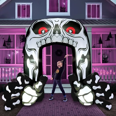 This Halloween inflatable skeleton with hands grabbing decoration is a true standout piece that will captivate everyone at your Halloween party. Its stunning visual effects, combined with the skeleton’s hands reaching out, create a sense of eerie realism that makes it an unmissable centerpiece. The skeleton is designed with meticulous attention to detail, making it look incredibly lifelike and spooky. The product size of 8.3 x 4 x 8 feet makes it a substantial and eye-catching addition to any Halloween display. It is perfect for creating a spooky and festive atmosphere in any setting. Whether you’re hosting a Halloween party, decorating your yard for trick or treaters, or setting up a haunted house, this inflatable skeleton archway will be a highlight of your decorations.