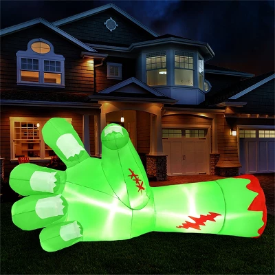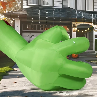 This 9-foot monster hand inflatable redefines Halloween decor with its groundbreaking horror aesthetic. Meticulously crafted with anatomical precision, each grotesquely elongated finger features realistic knuckle wrinkles, cracked fingernails, and disturbing skin textures that appear freshly unearthed from some cursed burial ground. The exaggerated proportions (9 x 4.5 x 2.3 feet) create an imposing silhouette that suggests a colossal creature might be bursting from underground. Every vein and tendon is sculpted in terrifying detail, making the hand look like it’s frozen mid-grasp – perfect for appearing to reach out from walls, erupt from flower beds, or burst through fences. Its imposing size creates instant curb appeal that dominates neighborhood displays while remaining lightweight enough for easy repositioning.