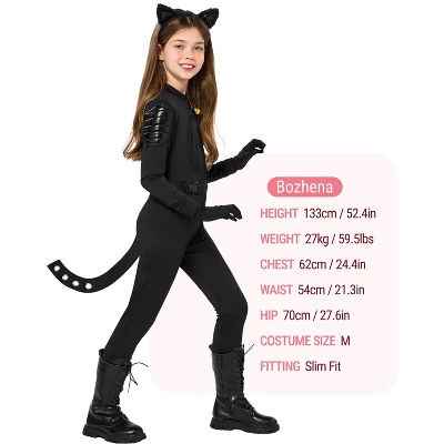 - Our black cat costume includes a bodysuit, belt, headband, and gloves, providing everything needed to create a complete and charming cat look. Each piece is designed to work together seamlessly, ensuring your little one embodies the mysterious allure of a feline.
