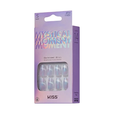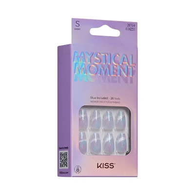 Try one of the hottest salon manicure trends with KISS Mystical Moment Nails. These super-dimensional nails are made with a magnetic powder effect that imparts a textured and velvety finish, just like the popular salon magnetic nails. Magnetic fake nails in the chicest color and design mixes are durable, flexible, and easy to apply and remove with no damage to your natural nails. The results are mesmerizing styles & finishes that last up to 14 days with a comfort fit.