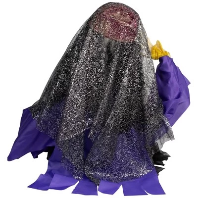 Add a mystical element to your Halloween decor with this lighted and animated fortune teller Halloween decoration. This enchanting figure instantly becomes the centerpiece of any spooky display, captivating guests with glowing lights and eerie motion. The fortune teller is dressed in traditional mystical garb, holding a magical crystal ball between her hands. As the ball lights up in vivid shades of purple, blue, and green, it creates a supernatural ambiance perfect for haunted houses, parties, or porch displays. Her lifelike animation brings an extra level of intrigue, with subtle movements that draw attention and build anticipation. Whether placed near your front door to welcome trick-or-treaters or set indoors as part of a haunted fortune-telling setup, this Halloween fortune teller decoration adds an irresistible air of mystery. Crafted with detailed features and durable materials, this animated Halloween prop is built to last through many spooky seasons. The multicolored lights and realistic design make it ideal for enhancing both indoor and covered outdoor spaces. A must-have for lovers of the paranormal, this fortune teller Halloween animatronic adds charm, excitement, and a touch of the unknown to your seasonal collection. Invite the spirits in and let her reveal your Halloween fate!Product Features:The magic ball glows with shifting shades of purple, blue, and greenThe fortune teller’s head sways with unsettling realism as she delivers spine-chilling predictionsEyes light up a bright redRequires 3 “AA” size batteries – not includedConvenient on/off switch on battery packRecommended for indoor use onlyDimensions: 20″H x 19″W x 16″DMaterial(s): polyester/plastic