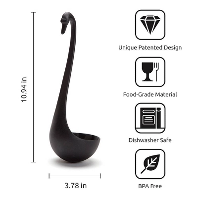- Swan-shaped ladle that floats gracefully on soups and stews.