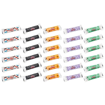Hand out colorful tricks and creative treats with the Play-Doh Spooky Colors 30 Pack! Get trick or treaters screaming with joy when you give them a kids Halloween candy alternative that lets them use their imaginations. A perfect size for treat bags, these individually wrapped color sticks each contain 1 ounce (28 grams) of Play-Doh modeling compound. 5 different colors include 6 each of orange, green, purple, white, and black for a fun bulk Halloween toys variety pack.