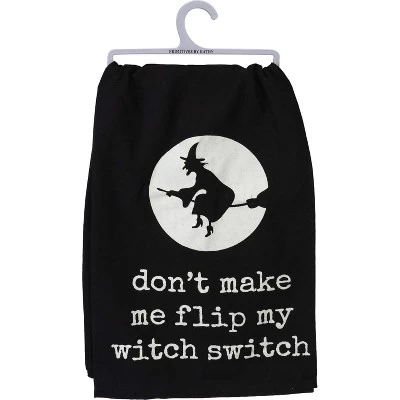 Add some Halloween humor to your kitchen with the Primitives By Kathy “Don’t Make Me Flip My Witch Switch” Kitchen Towel. This 28″ x 28″ cotton towel features a playful witch and broom graphic with a witty sentiment, perfect for adding festive charm. Made from 100% cotton, it’s soft, absorbent, and machine-washable for easy cleaning. A fun addition to your Halloween decor or a great gift idea!