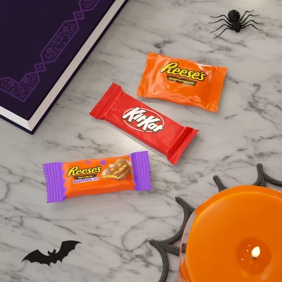 - Includes REESE’S milk chocolate peanut butter cups candy, REESE’S milk chocolate peanut butter pumpkins candy and KIT KAT® milk chocolate crisp wafer candy bars