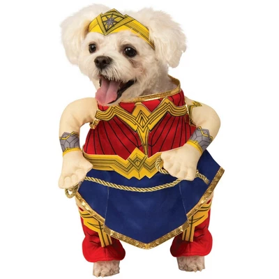Give your super adorable pet a superhero costume. You’ve never seen Wonder Woman like this. This costume comes with a red top and blue skirt with details such as the signature “WW” logo in gold on the top. Great for any costume party, themed photo shoot or even bringing your beloved pet to a comic convention! Bring this home for your puppy and give her superpowers!