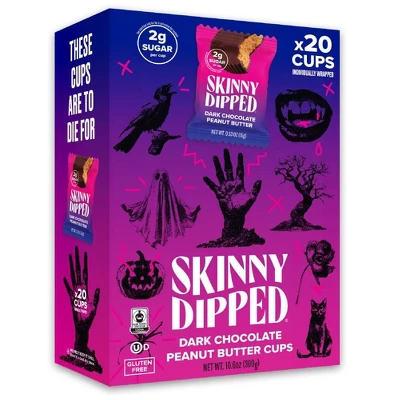 - Your favorite Halloween candy just got a glow-up! SkinnyDipped Cups are the perfect lower sugar, oh-so-delicious anytime treat…no tricks.
