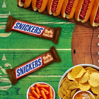 Packed full of peanuts, caramel and nougat cloaked in creamy milk chocolate, Snickers Full Size Candy Bars help satisfy hanger. Stock up on Full Size candy satisfaction with this six-count SNICKERS Full Size candy bar pack. Fill the pantry at home or in the office with peanut-packed chocolate candy treats. They’re great packed together with lunches, as a work time pick-me-up or simply enjoyed as a dessert. With six Full Size bars in each pack, you’ll have plenty to satisfy your sweet tooth and share with friends. Bulk candy is great to have on hand for holidays and small celebrations, craft gift bags and care packages full of SNICKERS candy bars. Pass them around on Halloween to be the best house on the block. No matter how you enjoy bulk Full Size SNICKERS chocolate candy, they’re guaranteed to satisfy.