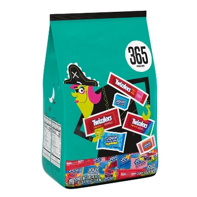 - 365 pieces of individually wrapped JOLLY RANCHER and TWIZZLERS candy inside a bulk bag