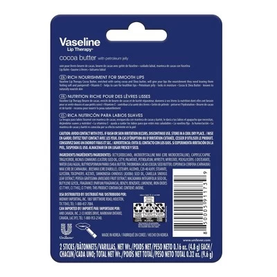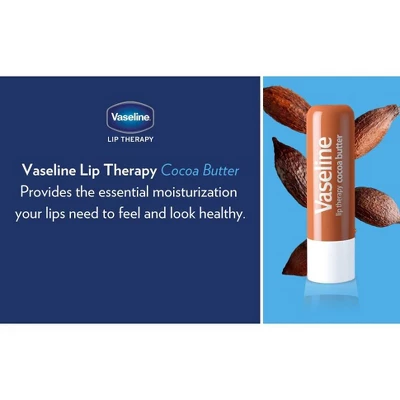 - Vaseline Lip Therapy Cocoa Butter sticks help lock-in moisture for beautiful, healthy lips